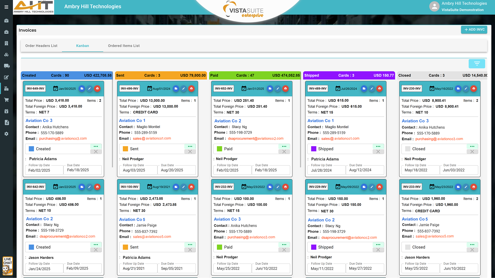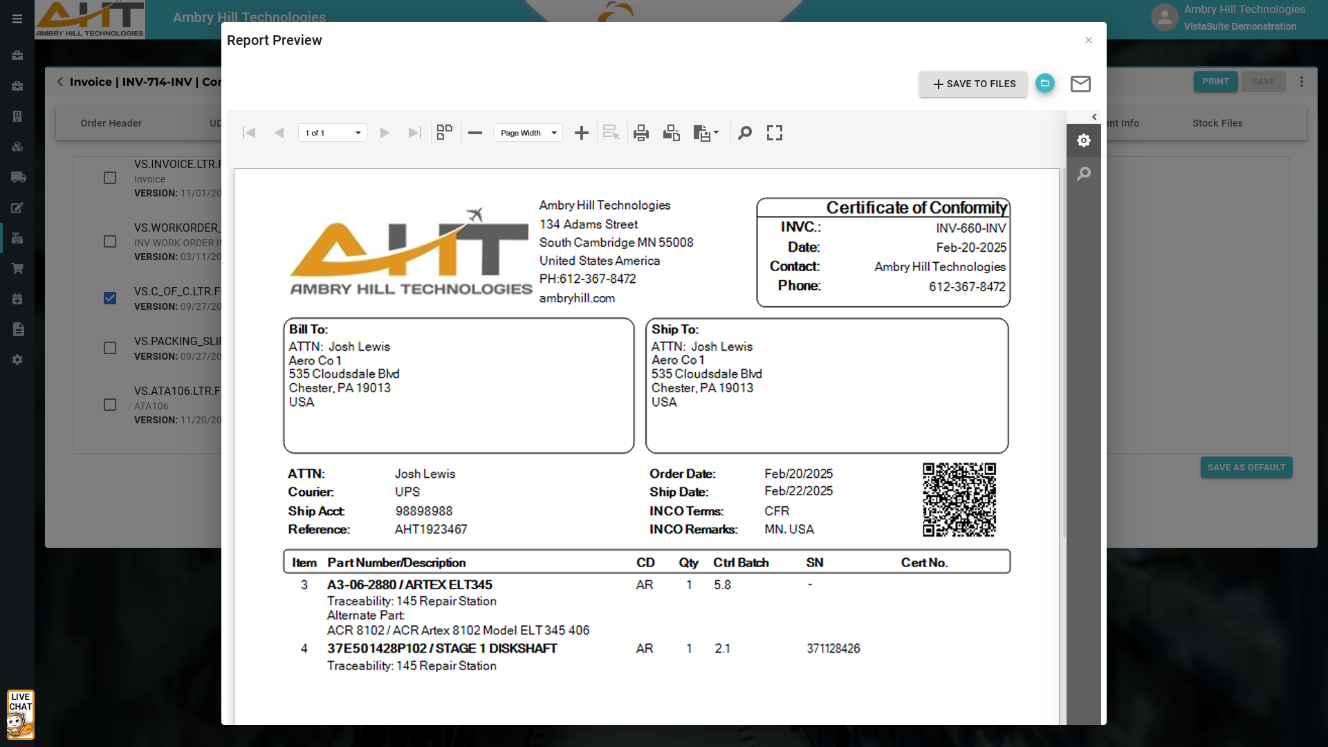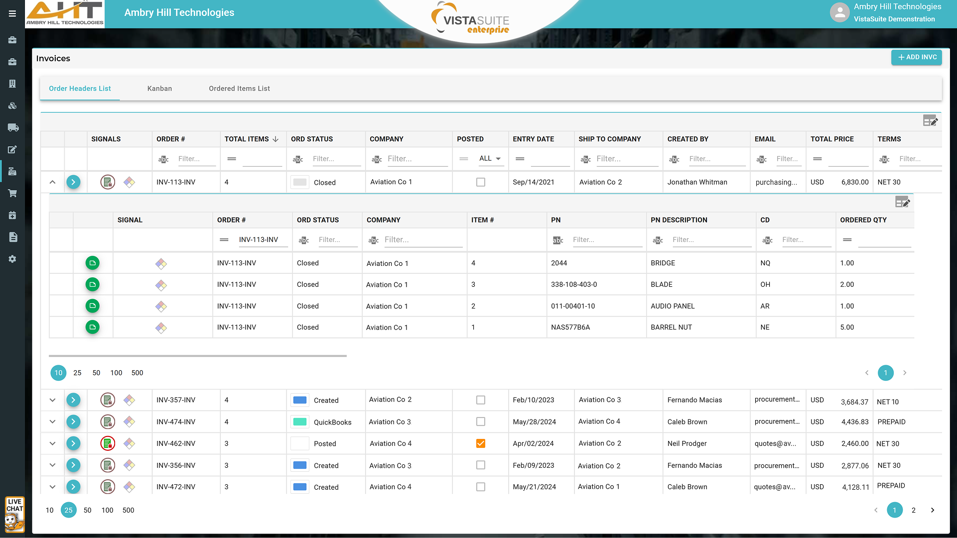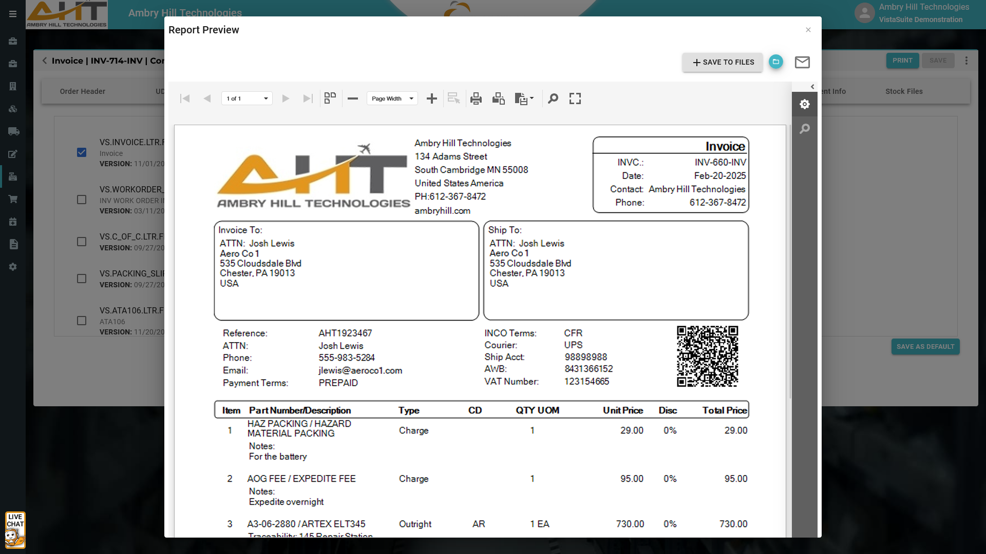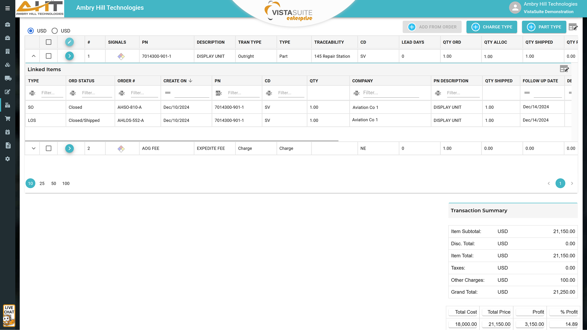 Traditional invoicing processes in aviation parts trading and MRO are often slow, error-prone, and fragmented, leading to wasted time, inconsistent documentation, and potential revenue loss. Vista-Suite Enterprise reforms invoice management with a connected, highly efficient workflow designed specifically for the aviation aftermarket. Its intuitive system navigation and convenient header and item clause selections eliminate manual entry inefficiencies. Bulk line item detail editing speeds up invoice creation, while consolidated inventory file access enhances productivity. Invoices support multi-currency transactions with integrated exchange rate updates, tax code entry, and multiple charge types. Advanced inventory handling allows users to mix and match stock types, simplifying complex sales scenarios. Credit memos are easily accomplished, and precise financial reporting is ensured by keeping the original sale intact. Additional features like alternate part selection, line item traceability, INCO terms, and exchange transaction details provide a comprehensive, flexible invoicing solution.