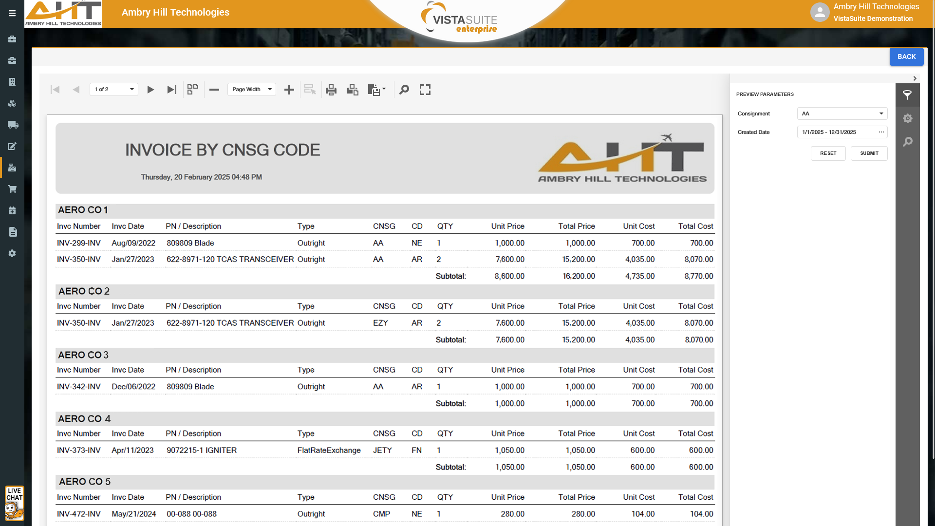 Invoice By Consignment Code: A report categorizing invoices based on consignment agreements, helping track sales and payments for consigned inventory.