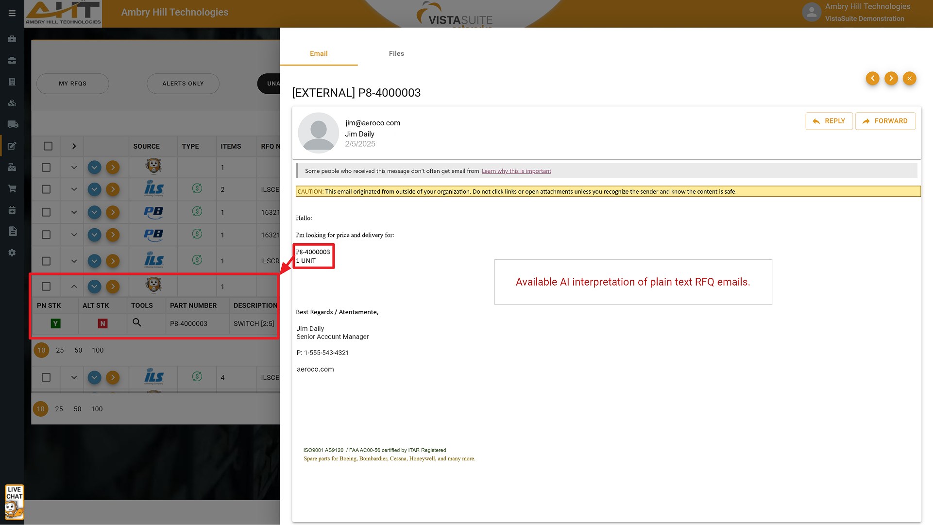 RFQs received in standard plain text can be identified as RFQs and processed like all others, ready for immediate action. Premium add-on.