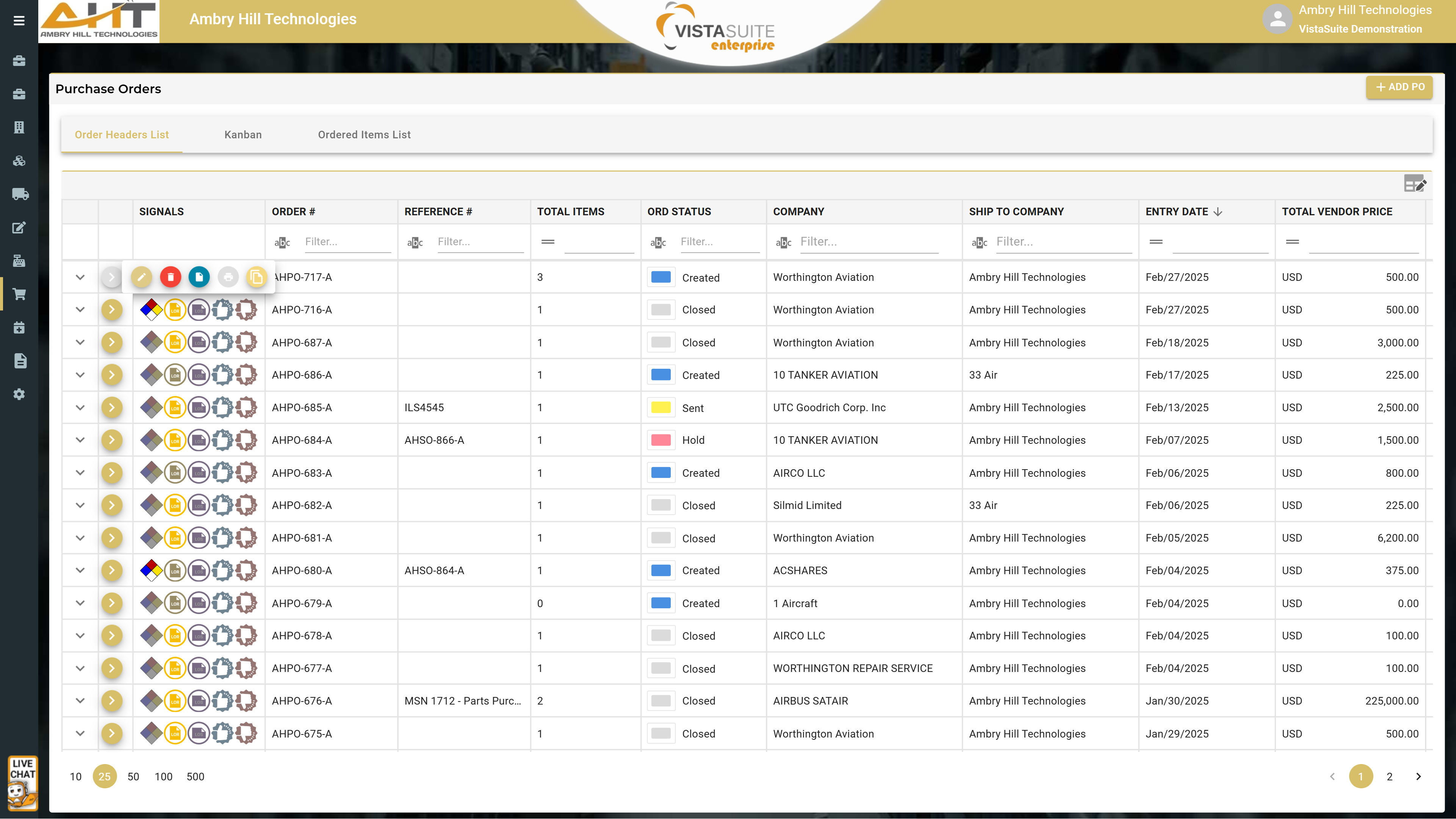Vista-Suite Enterprise offers an intuitive, user-centric interface for managing purchase orders efficiently. Quickly locate and modify orders with minimal clicks; and effortlessly filter, sort, and search purchase orders based on criteria like status, vendor, or order date. Various layouts are provided, such as a standard list, an ordered items list, or a Kanban view that provides dynamic visual tracking of where each item stands in the workflow. A customizable dashboard can display pending inbound items, so you can quickly access and act on what's most important. Effortlessly create purchase order returns from existing orders for a remarkably smooth workflow. These features and more work together to reduce manual work and make your entire purchase order process fast and straightforward.