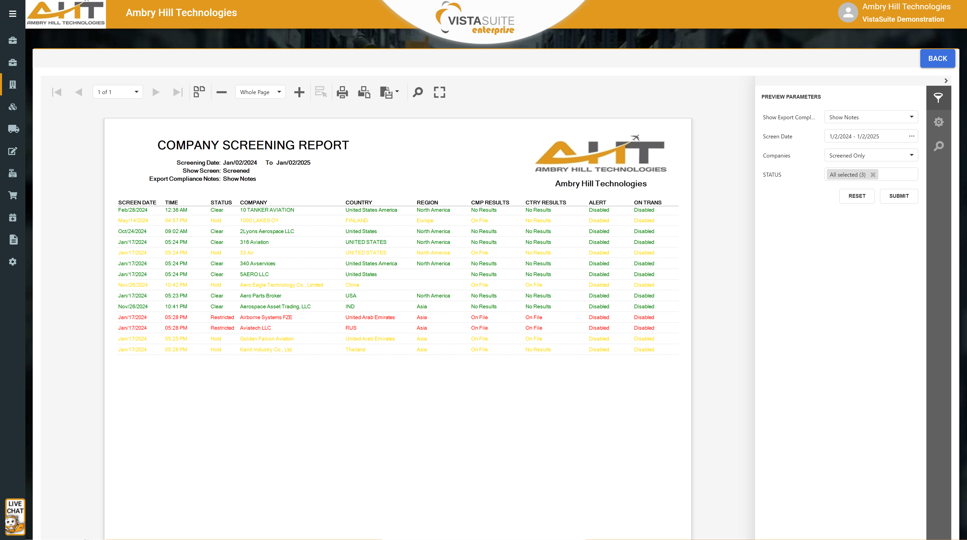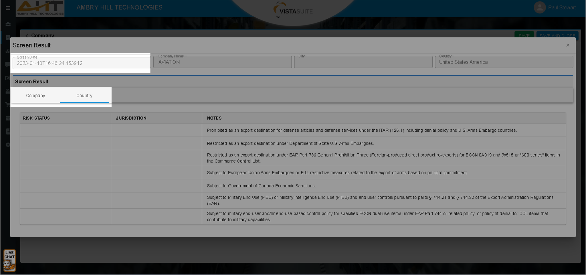 Manually screening every company and individual was the norm, but with Vista-Suite Enterprise, now it’s the exception. An integrated screening interface is available for scenarios that require manual checks.