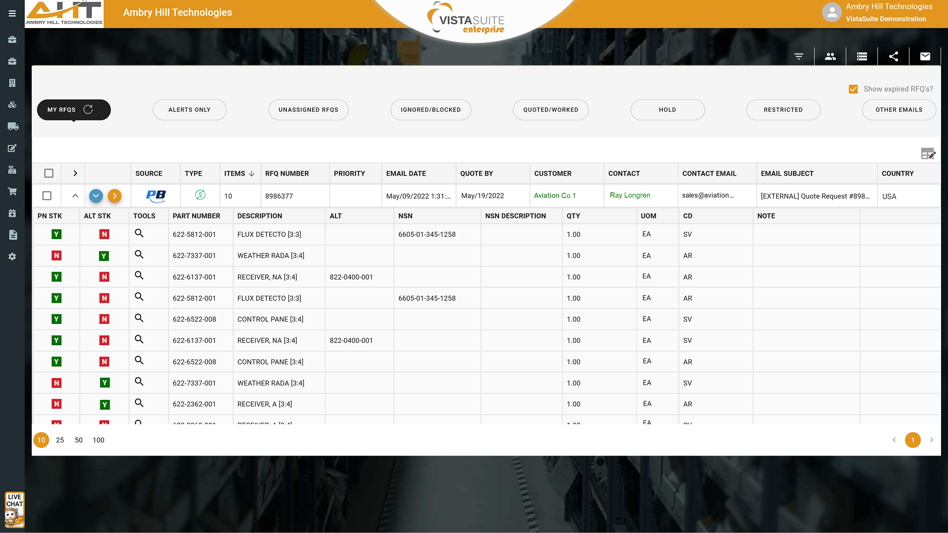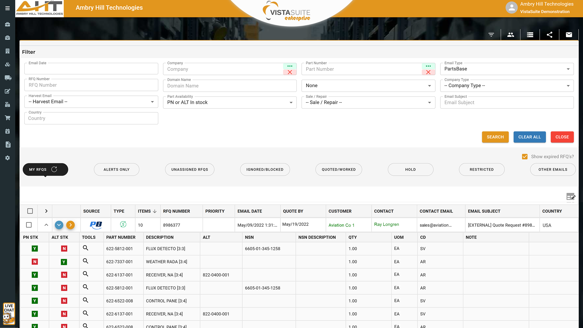 By centralizing the inbound RFQ workflow, automating data entry, and intelligently routing requests to the right people, Vista-Suite Enterprise ensures that every opportunity is processed quickly. This reduces turnaround time, increases the likelihood of winning business, and prevents costly compliance violations. Additionally, features like batch processing, inventory visibility, and direct research links give sales teams an edge over the competition. In an industry where response speed and reliability directly impact profitability, having a robust RFQ management system is not just beneficial—it’s essential.