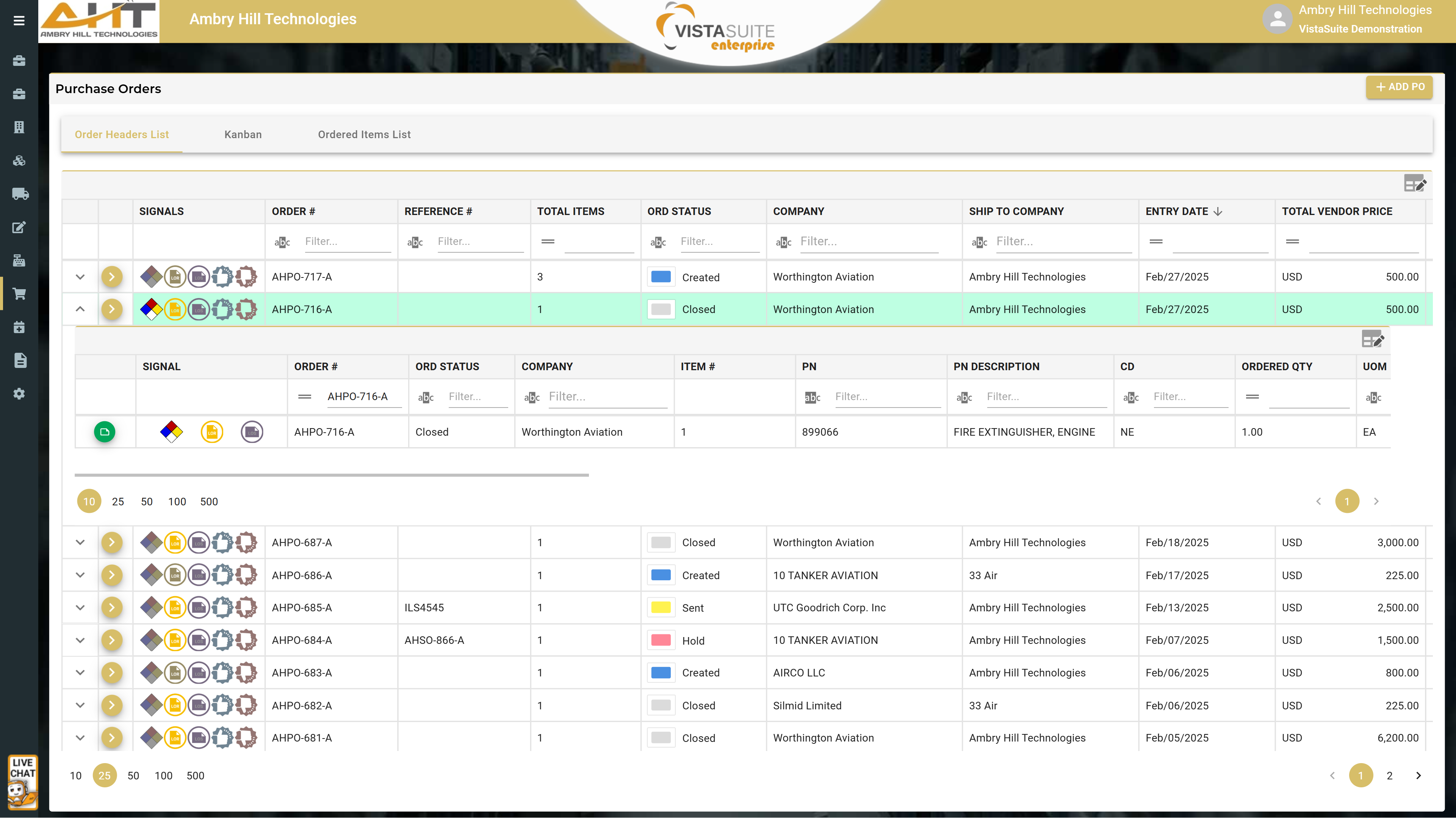 Vista-Suite Enterprise offers an intuitive, user-centric interface for managing purchase orders efficiently. Quickly locate and modify orders with minimal clicks; and effortlessly filter, sort, and search purchase orders based on criteria like status, vendor, or order date. Various layouts are provided, such as a standard list, an ordered items list, or a Kanban view that provides dynamic visual tracking of where each item stands in the workflow. A customizable dashboard can display pending inbound items, so you can quickly access and act on what's most important. Effortlessly create purchase order returns from existing orders for a remarkably smooth workflow. These features and more work together to reduce manual work and make your entire purchase order process fast and straightforward.