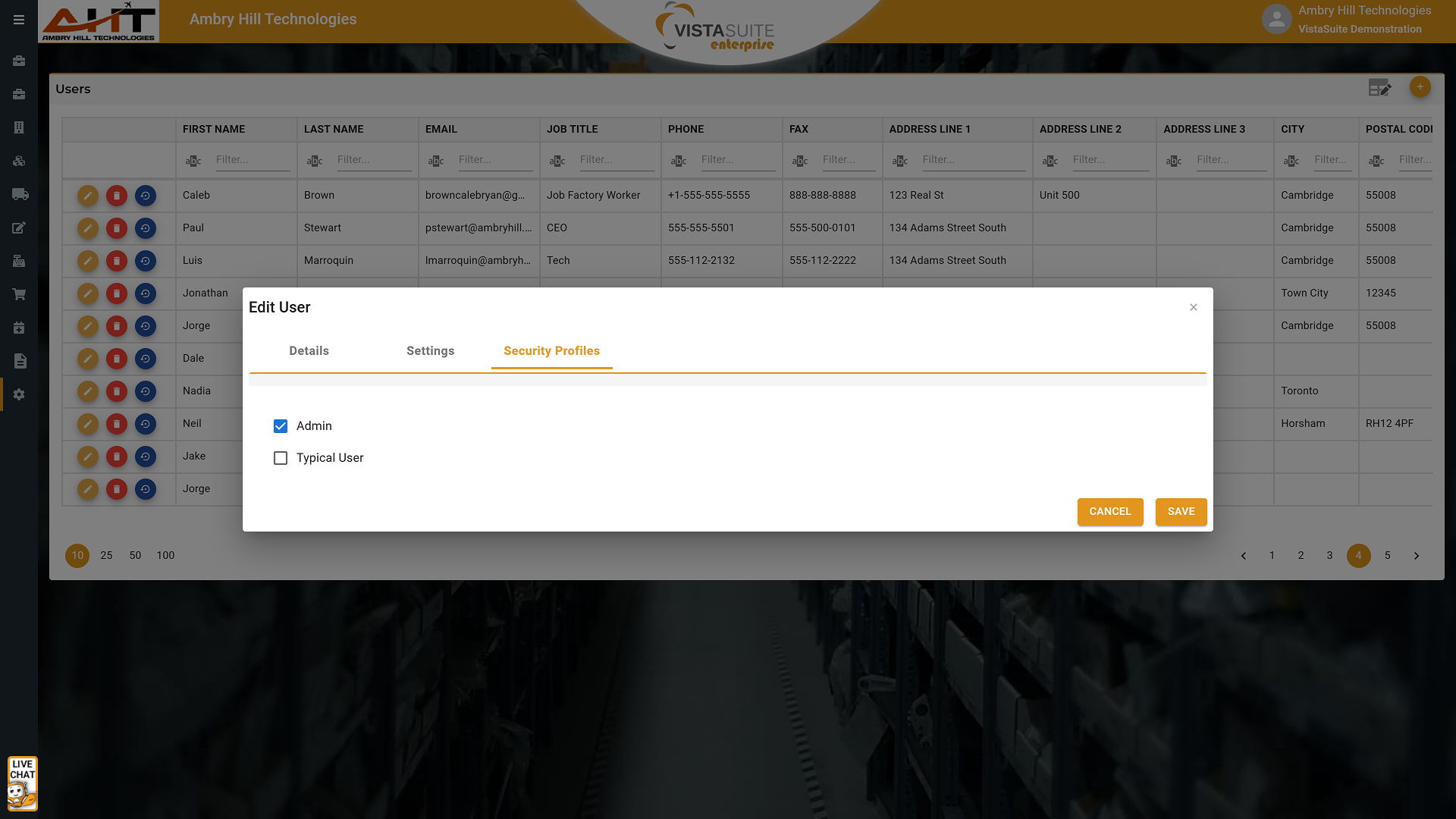 For aviation aftermarket companies, security controls are a concern for both ground-level operations and IT. Vista-Suite Enterprise’s role-based permissions help you prevent unauthorized edits to pricing, parts, and cost records; protect sensitive customer data; and support internal audit processes. Unlike other aviation ERP software systems with fixed role definitions or limited group permissions, Vista-Suite Enterprise gives you total control.