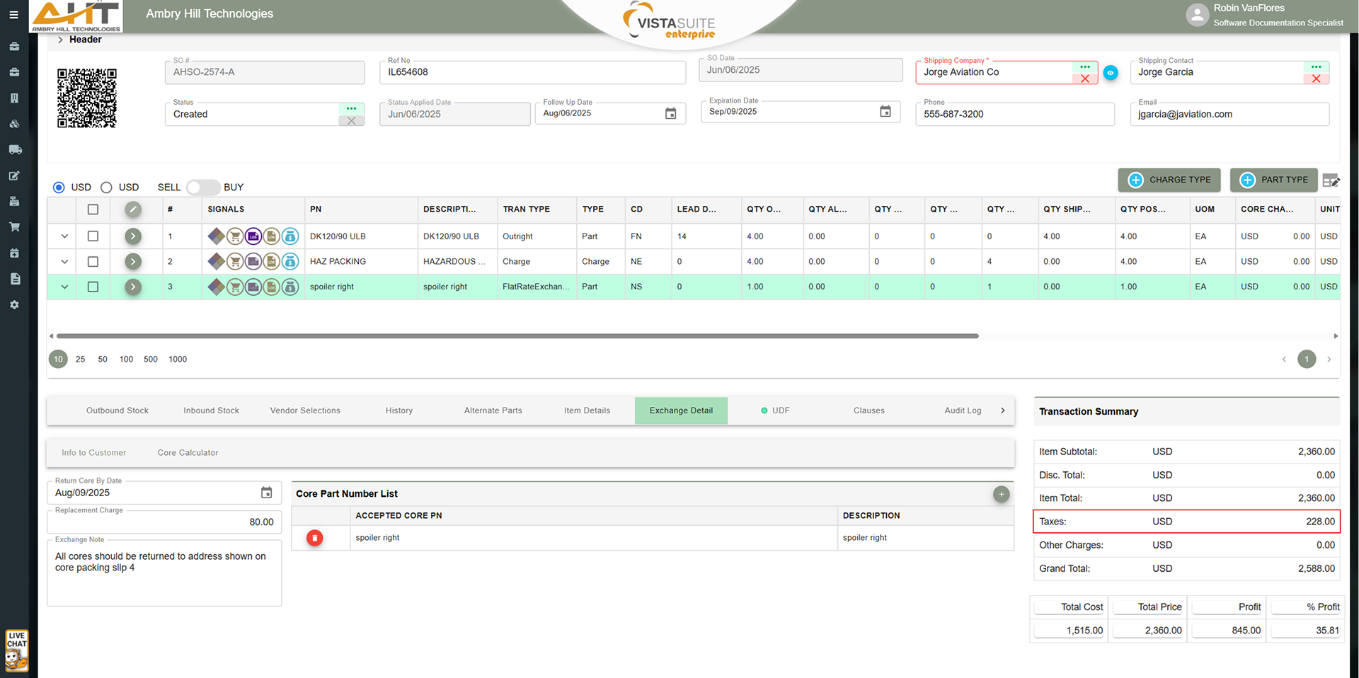 Whether billing foreign customers for component repairs or managing purchase orders with international suppliers, Vista-Suite Enterprise gives you direct control over currencies and tax settings within the transactions you create every day. With built-in Multi-Currency and Tax Management capabilities, users can apply the correct financial settings at the point of entry, eliminating the need for spreadsheets, finance team handoffs, or guesswork. Unlike other ERP systems that silo these functions in the back office or limit configurability, Vista-Suite Enterprise makes it easy to reflect accurate financials across all locations and for all transaction types from the very beginning.